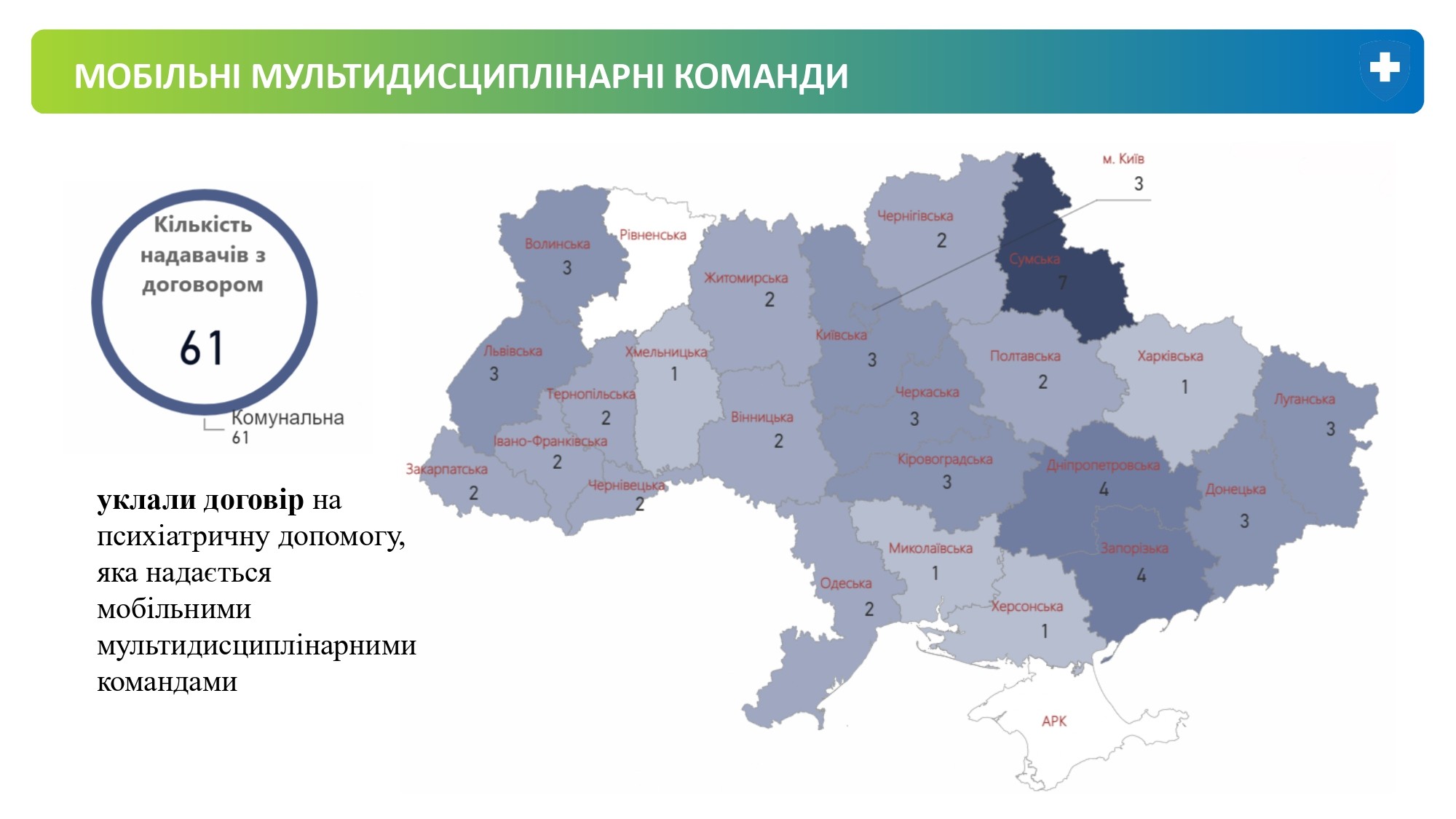 Перед вами відкривається аналітична панель з картою. У полях зліва оберіть потрібну область. Нижче – ваш населений пункт. І в пункті “Тип договору” – “Розлади психіки й поведінки та епілепсія”.